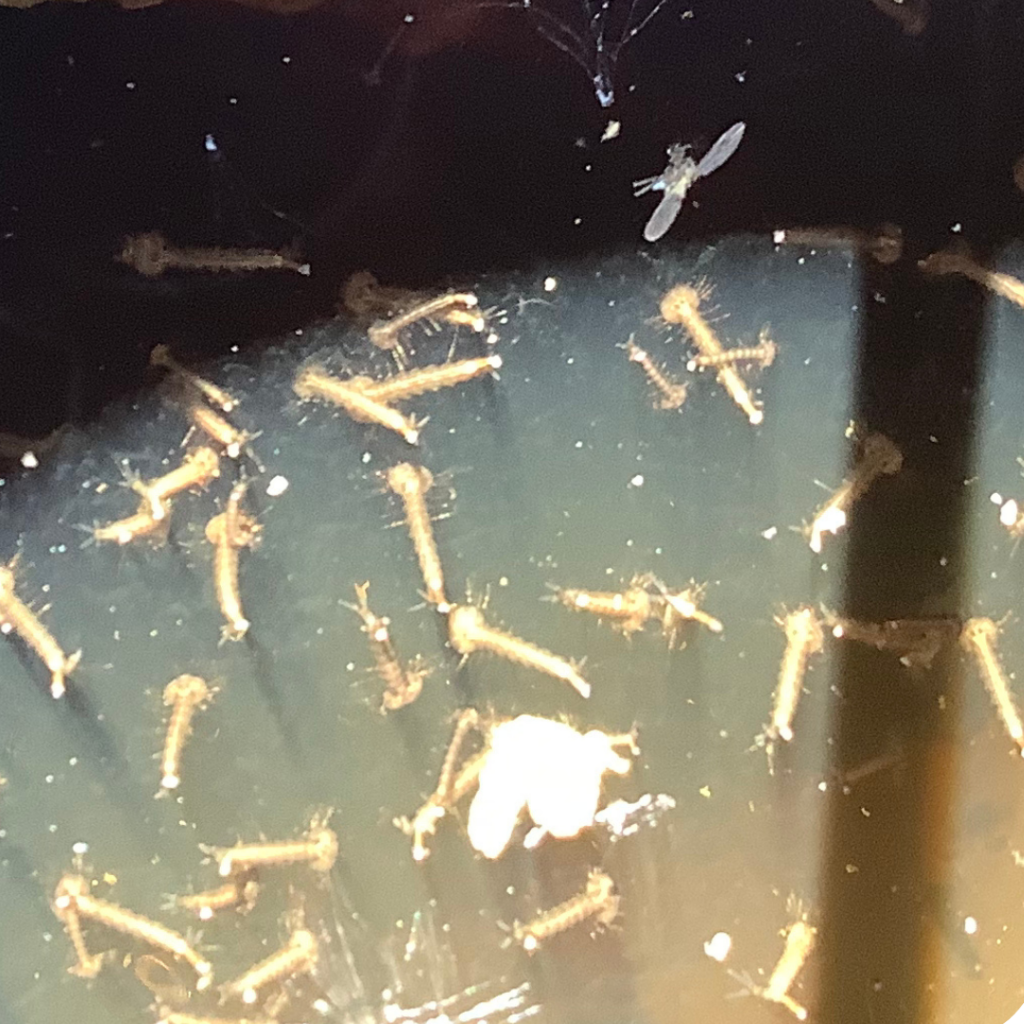 Une larve moustique tigre est visible dans l’eau :